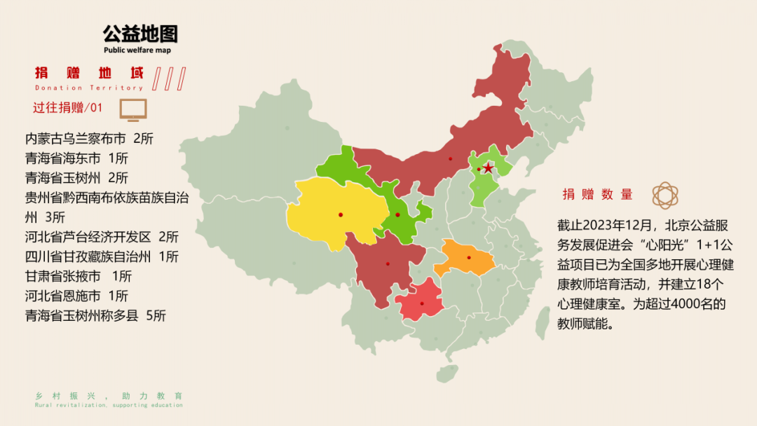 青海的美,是大自然的杰作。在青海,有雄浑的高原,有碧波荡漾的湖泊,有翩翩起舞的飞鸟,有悠扬的牧歌。走进青海,就像走进了一幅天然的水墨画,肆意感受那份恬静与宁谧。 当然,这里也有一群因父母忙于生计在外奔波而留守家乡的孩子们,他们的成长需要更多的关注和理解。基于此,北京公益服务发展促进会联合多家慈善组织、爱心企业等社会力量于2014年共同发起“心阳光1+1”公益项目,秉承以实现由当地人解决当地问题的服务理念,围绕当地留守儿童心理健康发展和学校心理健康教育双重需求,帮助学校构建和完善校园心理健康教育体系,包括建立专业、适用的心理健康服务空间,开展教师心理健康辅导技能培训,以及提供长期的专业督导服务等公益活动,引导和推动学校、教师、家长和社会共同为孩子们提供良好的情感关怀和心理支持,从而为孩子们的健康成长保驾护航。 近期,北京公益服务发展促进会联合北京健康促进会、玉树州热哇慈善会共同启动了2024年度“心阳光1+1”公益项目,并在青海省玉树州称多县正式拉开帷幕。 2024年“心阳光1+1”公益项目 青海站 跨越2347.8公里 “心阳光1+1”公益项目团队于8月14日出发,经历两天时间抵达青海省玉树州称多县,并立即投入分拣整理捐赠物资、安装心阳光成长室设备设施等工作中。 8月18日起,为期三天的心理教师赋能培训活动也在玉树州称多县完全小学顺利开展,来自全县多所学校的25名心理教师参与此次培训。培训过程中,中国农业大学高级心理咨询师师晓霞老师和中国科学院心理研究所博士龚莉华老师用新颖的教学方式,带领学员们深入探究理论知识,并结合实际案例进行实践指导。三天时间,教师们收获颇丰,培训的最后一天,教师们积极分享心得体验,并期待下次培训能学习到更多知识。 与此同时,项目组协同专家老师一同走进学生家中,深入调研孩子们的生活、学习和心理健康等情况,并为他们送去爱心物资。 据悉,本次活动共为称多县5所学校捐赠了全套心理健康教室必备设备及心理测评系统。下一步,项目组将通过线上方式为当地心理教师提供一对一督导支持,以帮助其快速掌握实操技能并有效应用于实践中。此外,项目还将通过多渠道收集教师们在实际工作中遇到的痛点问题,为本年度后续精准开展“实用型”培训做好充分准备。 促进学生身心健康、全面发展,是党中央关心、人民群众关切、社会关注的重大课题。随着经济社会快速发展,学生成长环境不断变化,学生心理健康问题更加凸显。为认真贯彻党的二十大精神,以及全面落实《中国教育现代化 2035》《国务院关于实施健康中国行动的意见》民政部、中央网信办、国务院妇儿工委办、全国妇联等15部门联合印发《农村留守儿童和困境儿童关爱服务质量提升三年行动方案》等文件精神,加强和改进新时代学生心理健康工作,提升学生心理健康素养,“心阳光1+1”公益项目深耕植入,先后为青海、湖北、贵州、内蒙古、四川、甘肃、河北等地捐建心阳光成长室(心理健康室)共计18所,并提供系列教师心理健康教育技能培训课程。未来,该项目将联合更多社会力量,继续面向乡村地区提供更加专业和实用的心理健康服务支持,助力乡村学校提升心理健康教育能力,从而为促进中小学学生心理健康水平提升,引导孩子们更加向阳而生、快乐成长贡献爱和力量。 “心阳光1+1”公益项目 一个人是守望,加一个人是陪伴,愿我的心陪伴你在阳光下长大。 end 北京公益服务发展促进会成立于2000年,由北京市长期从事公益事业实践及理论研究的专家、学者、热心公益事业的爱心人士发起,并于2012年经北京市社会团体登记管理机关核准登记,5A级社会组织,具有公益性捐赠税前扣除资质,系我市首批认定的社团类慈善组织之一。主要业务为专业培训、专题调研、评估与咨询服务、接受捐赠等,现已发展成为集行业研究、人才培育、平台运营、专业支持、社会服务为一体的综合性公益文化传播和支持型专业公益服务机构。曾获得第九届“中华慈善奖”最具爱心慈善楷模奖、北京市社会组织公益服务品牌银奖、北京市社会组织系统先进集体奖等。